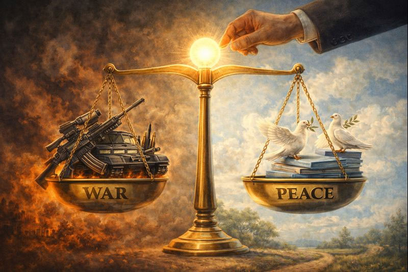 Nykymaailmassa rauhaa käsitellään usein sotavarustelun kautta.Turvaa haetaan uhalla. Vakautta voimalla.Tämä on noidankehä: