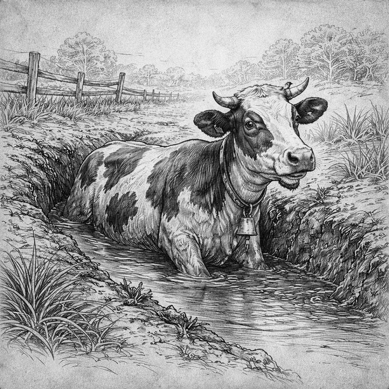 “Oma lehmä ojassa”ei paljasta mielipidettä.